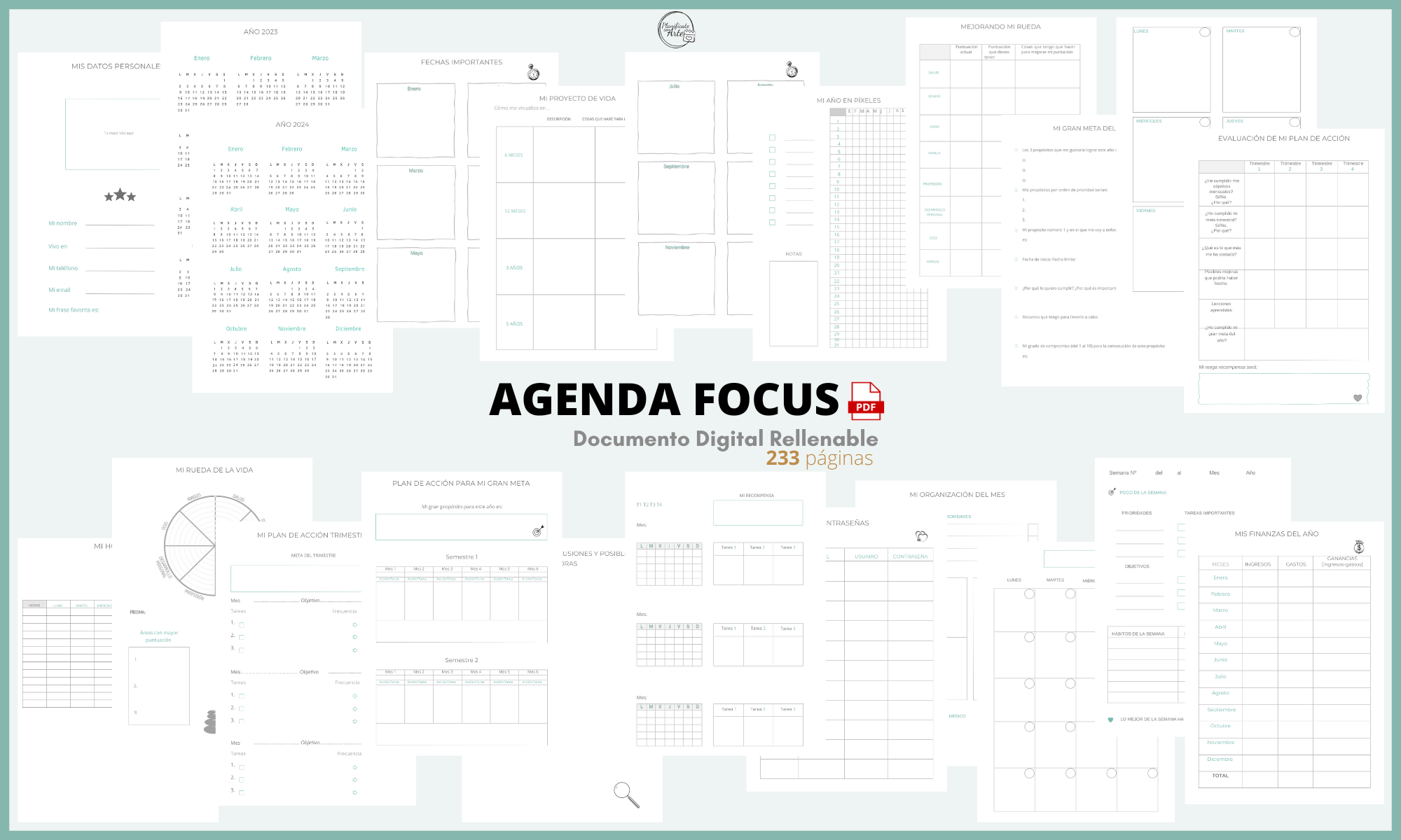 Este producto incluye una versión de agenda imprimible (233 páginas) y otra versión de agenda rellenable (para poder personalizarla y rellenar los campos desde tu ordenador de forma rápida, sencilla e intuitiva).