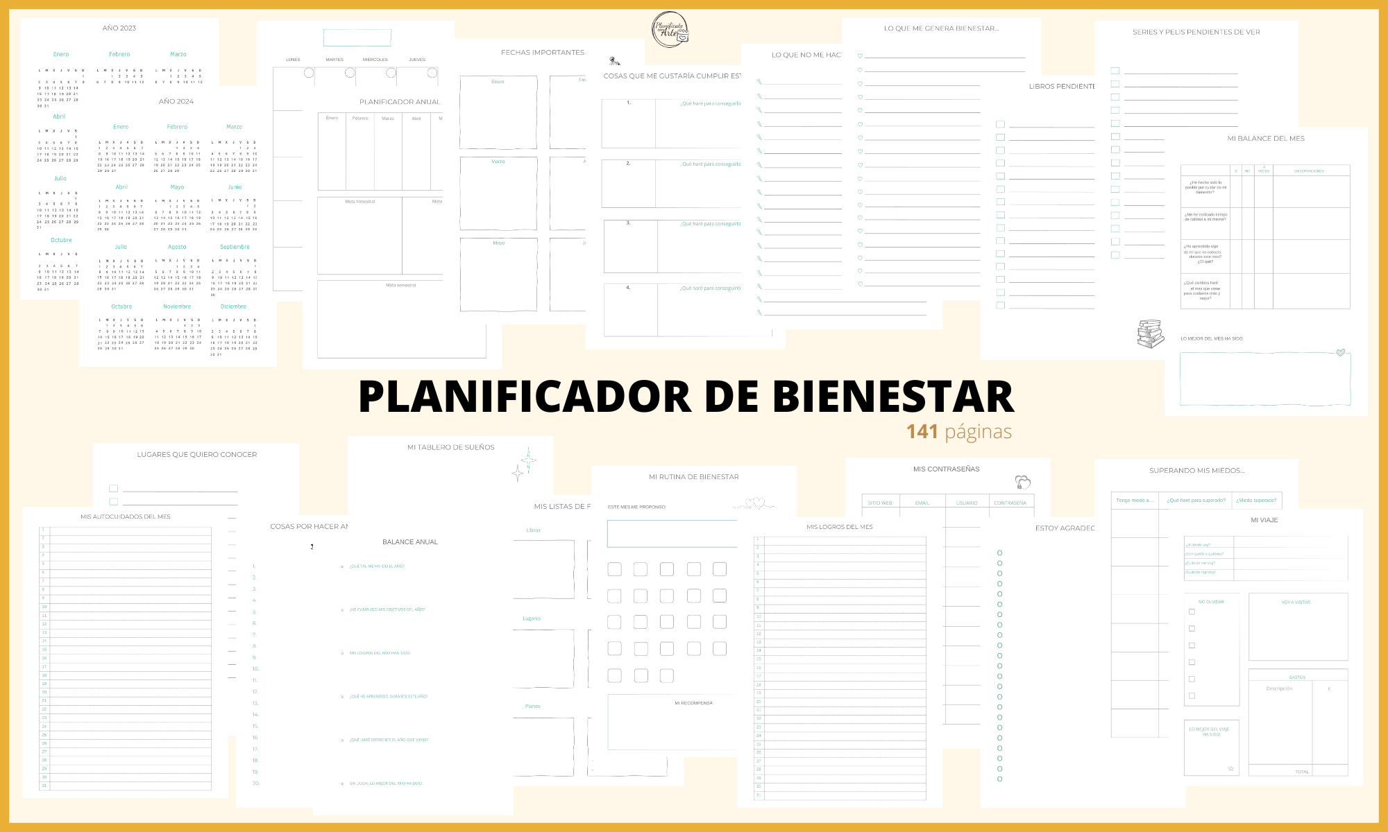 Esta Agenda Planificadora de Bienestar está diseñada y creada especialmente para aquellas mujeres que necesitan sentirse mejor, conocerse un poquito más, cuidarse y quererse más, dedicarse tiempo de calidad, valorarse y conectar consigo mismas.