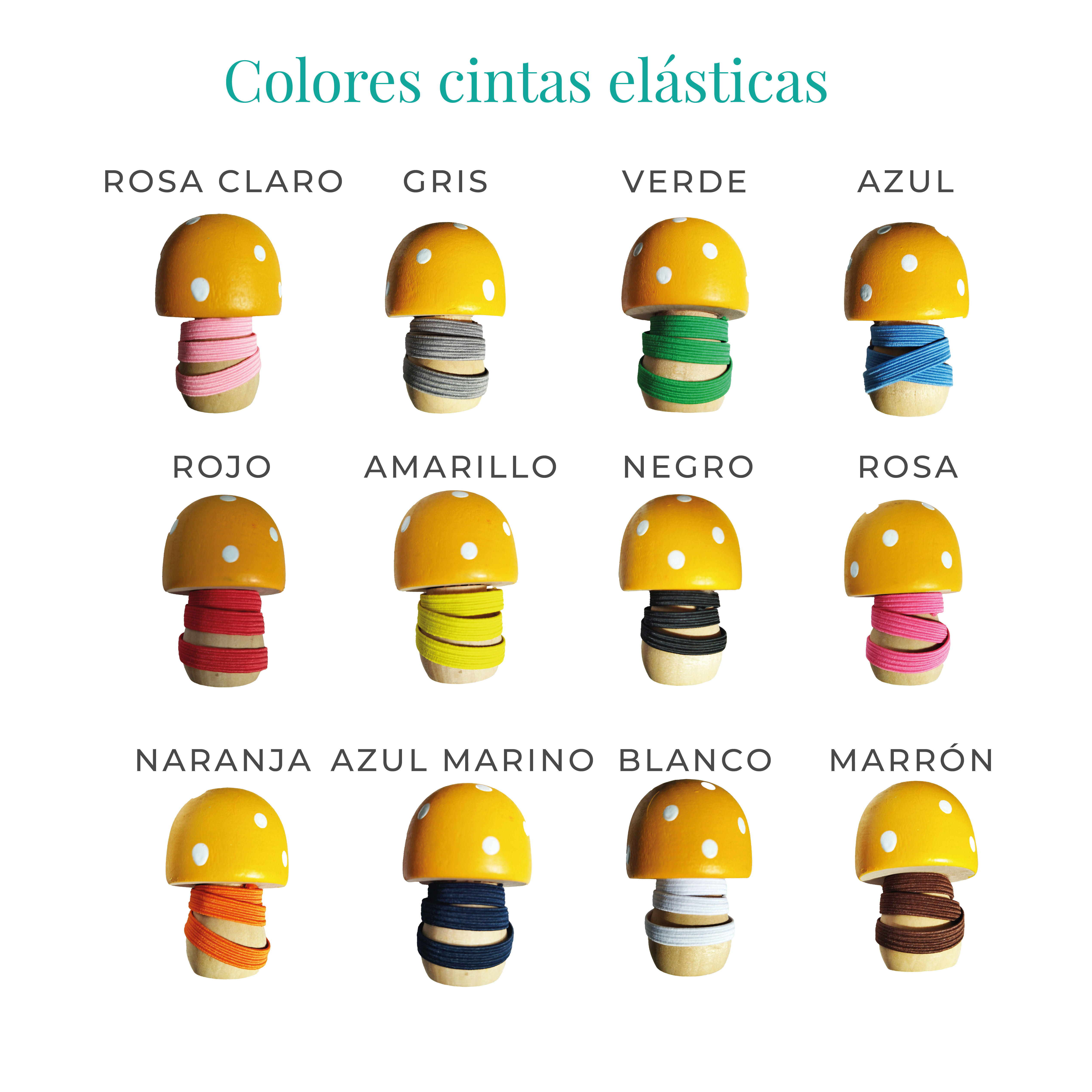 | Color gomas elásticas | Goma plana amarilla, Goma plana azul, Goma plana azul marino, Goma plana blanca, Goma plana gris, Goma plana marrón, Goma plana naranja, Goma plana negra, Goma plana roja, Goma plana rosa, Goma plana rosa claro, Goma plana verde, Goma redonda amarilla, Goma redonda azul, Goma redonda blanca, Goma redonda morada, Goma redonda negra, Goma redonda rosa, Goma redonda turquesa, Goma redonda verde |